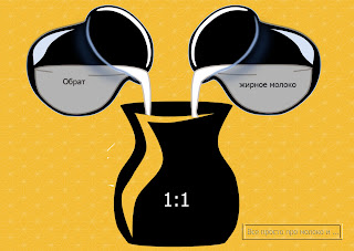 этого мы взяли свежий обрат и смешали его с цельным молоком 1:1.
